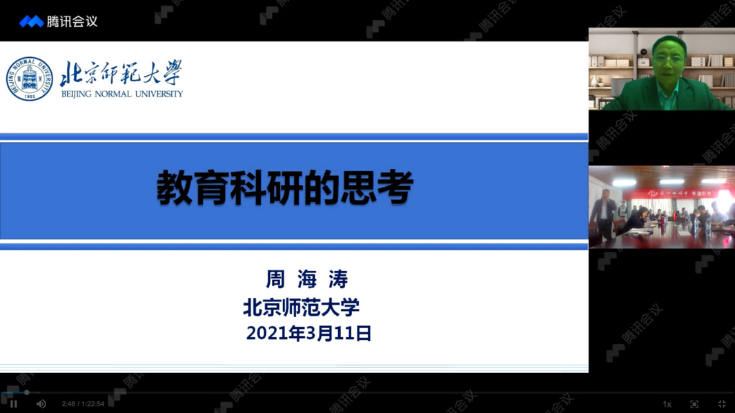 3月11日上午,丰湖教育论坛系列讲座暨东江大讲堂第274讲在旭日楼621开讲,讲座邀请北京师范大学周海涛教授开展线上学术报告。各二级学院分管教学和研究生的副院长、全校课程教学论任课教师、教育科学学院全体专任教师以及我校联培研究生和部分本科生集中聆听了讲座。讲座由惠州学院特聘教授陈伟主持。