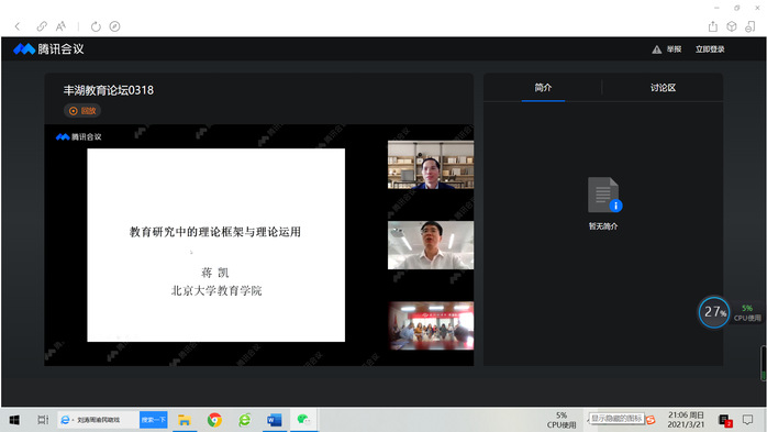 3月18日上午,丰湖教育论坛系列讲座暨东江大讲堂第275讲在旭日楼621开讲,讲座邀请北京大学蒋凯教授开展线上学术报告。各二级学院分管教学和研究生的副院长、全校课程教学论任课教师、教育科学学院全体专任教师以及我校联培研究生和部分本科生集中聆听讲座。讲座由惠州学院特聘教授陈伟主持。