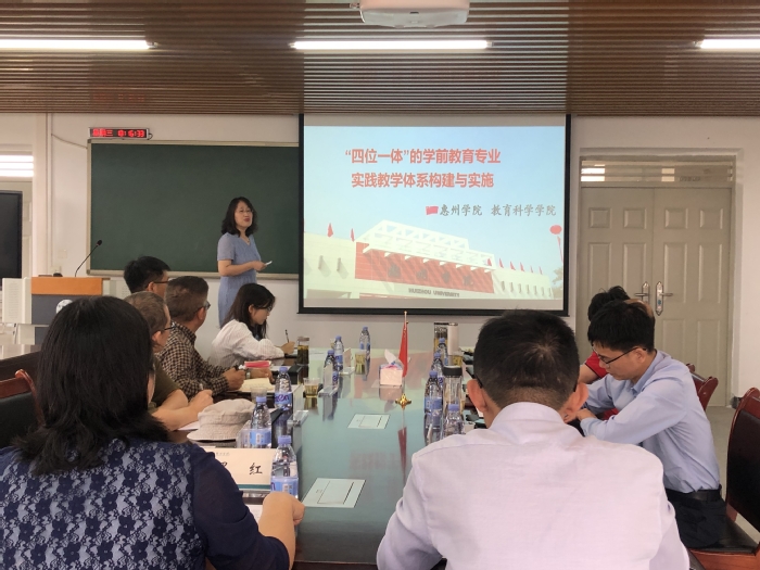 座谈会上,学院党总支书记谢伟强介绍了学院基本情况。学院副院长谢桂新介绍了学院教学成果《“四位一体”的学前教育专业实践教学体系构建与实施》,总结了近年来学院在实践教学中取得的成绩。学前教育专业实践教学体系从“真善美慧”的实践教学目标、“内外交融”的实践教学内容、“时空全覆盖”的实践教学系统以及以“S”为中心“U-G-K”深度融合的实践共同体等几个方进行构建与实施,得到了来访嘉宾的认同,并表示希望学习和借鉴教科院的实践教学模式。各系主任及专业负责人重点从专业建设情况、服务地方能力及管理经验等方面谈了各系的发展情况。