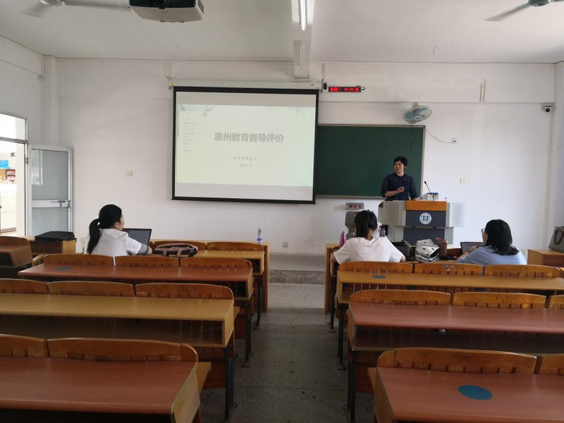 毛少琼副局长在讲座中主要围绕《教育督导与质量评价》课程在惠州市如何实施教育督导与质量监测开展讲座。毛少琼副局长首先介绍了惠州市教育督导发展历程,接着围绕“督政、督学、评估监测”八个字详细阐述惠州市教育督导评价的实施。随后,又分享了惠州教育督导评价的案例,如以“教育强镇”为例督促地方政府依法履行教育职责的督政机制、以“责任督学挂牌督导”为例指导各级各类学校规范办学、提高教育质量的督学体制、以“国家义务教育质量监测”为例介绍科学评价教育教学质量。