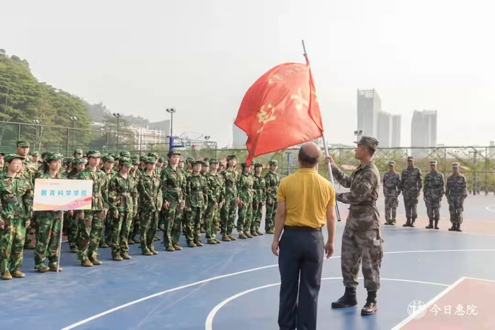 9月16日上午8点,教育科学学院2021级新生军训开营仪式于室外运动中心篮球场顺利举行。参加此次活动的有学院党总支书记谢伟强、副书记刘华、辅导员、2021级新生班主任、教官们及全体新生。