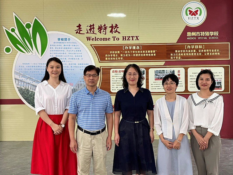 10月12日下午,教育科学学院谢桂新副院长率小学教育系主任陈国钦、实验教学中心主任段飞艳走访考察惠州市特殊学校,受到特殊学校范流灵校长、熊瑶副校长的热情接待。