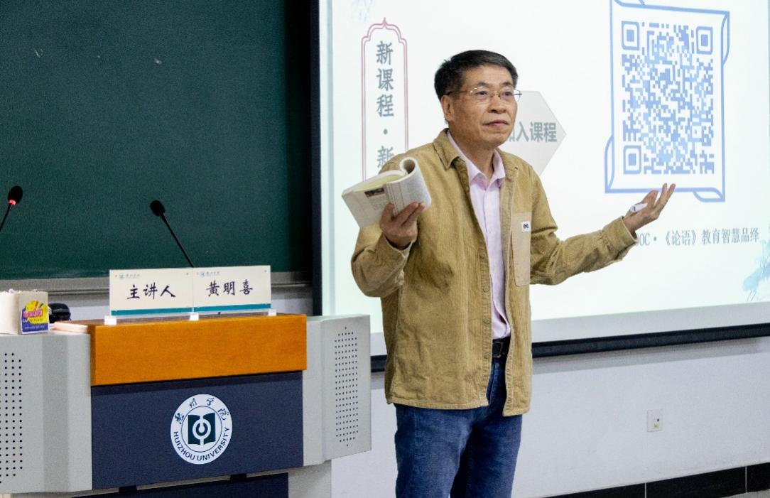 2021年10月28日上午,华南师范大学二级教授、博士生导师黄明喜应邀做客“丰湖教育论坛”,为我校教师带来一场精彩纷呈的学术盛宴。作为国家一流本科课程“《论语》教育智慧品绎”的建设者,以及在教育教学研究领域深耕二十多年的教学名师,黄明喜教授作了题为“中国大学MOOC建设的理论与实践:教师的视角”的专题讲座。讲座由教育科学学院院长陈伟教授主持,我院全体教师参加,亦吸引了学校其他院系教师的到场学习。