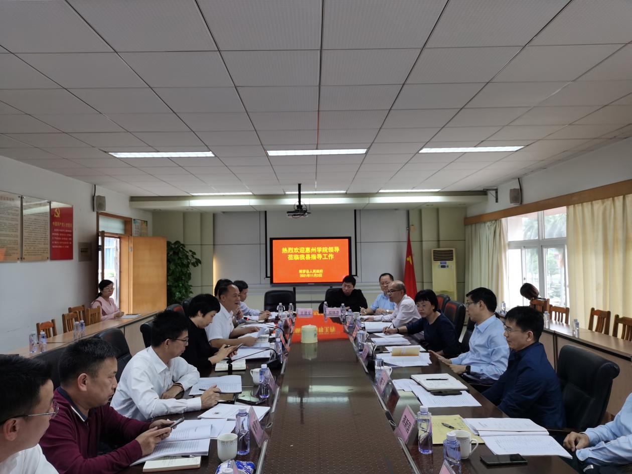 座谈会上,郑文说明了此次学习调研目的,表示希望了解博罗县基础教育发展中取得的成就和待解决的真问题,与博罗县建立教育高质量发展战略合作关系。他指出,博罗县是我校的优质生源地,同时我校的毕业生将成为博罗县教育领域的主力军,毗邻惠州市惠城区,有很好的地理优势,表明双方具有良好的合作基础。合作服务内容力争贴合博罗县教育发展的迫切需求,为落实博罗县教育高质量发展提供方案:构建学校校长、教师的评价责任指标体系,优选学校管理团队和骨干教师队伍;加强高校继续教育学院与地方教师发展中心联动合作,共享优质的教师培训专家和培训项目;探索地方自主设置公费定向培养中小学教师专项计划的路径,解决师资队伍结构性缺失的问题;加强高校学生培养与地方的联动,推动学生顶岗实习工作;创新名校(园)长、名教师的成长模式,将“三名”教师的自发成长与高校专家引领成长相结合;深入开展“三教”(教师、教材、教法)改革研究,推进高校与地方教育科研的合作,并开展培育省级及以上教学成果奖为目标的精准教研指导等。郑文强调,双方合作可以充分发挥高校的优质资源,为博罗县教育高质量发展提供全方位服务。