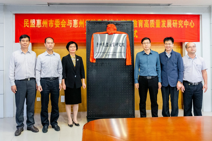在经过前期多次地往来交流之后,为更有针对性地解决教育共性和难性问题,民盟惠州市委会与惠州学院进一步达成了共建“惠州民盟教育研究院”基地的共识。其后,与会领导嘉宾亦共同为“惠州民盟教育研究院”的正式成立举行揭牌仪式。