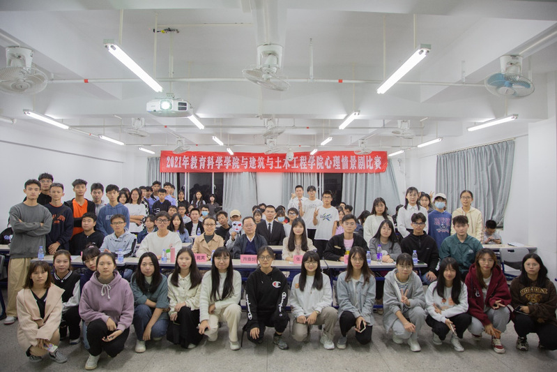 2021年12月12日晚19:30,由教育科学学院和建筑与土木工程学院联合主办的心理情景剧大赛于旭日楼举行。我院副院长肖崇好教授、辅导员张磊老师、心理咨询中心的王苑芮老师以及四位分别来自教科学院和建土学院的学生代表担任本次比赛的评委。