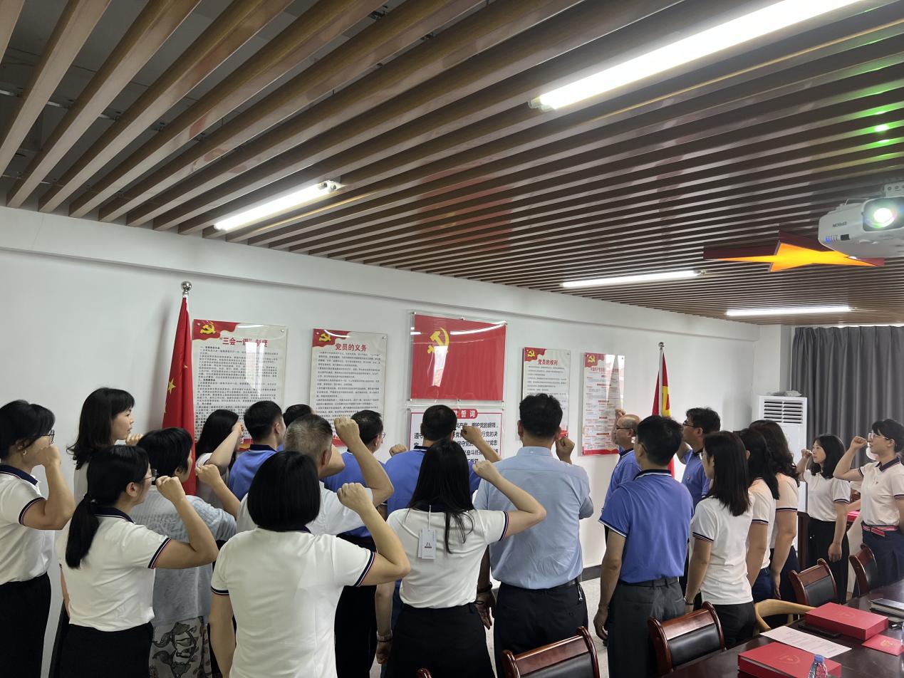 再次,与会党员同志在谢伟强的带领下,面对党旗,重温入党誓词,以此勉励大家发挥党员先锋模范作用,在工作中不断创先争优、发光发热。