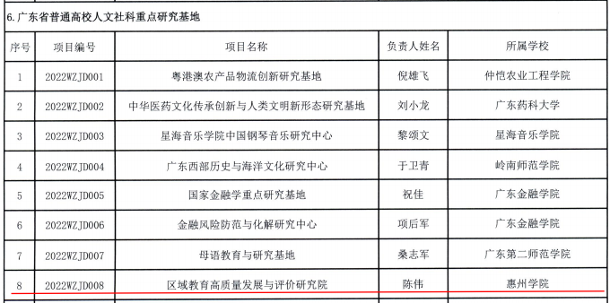 日前,教育厅公布了2022年度普通高校重点科研平台和项目立项名单,由教育科学学院陈伟院长领衔申报的“区域教育高质量发展与评价研究院”成功获批广东省普通高校人文社科重点研究基地。基地的获批是我校教育学科高质量发展的重要体现,为我校教育学硕士点申报提供了重要的学术平台支撑。