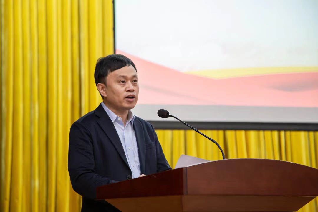 吕光洙副教授作教师代表发言时向新生提出人生三问:“我是谁”“我从何而来”“我要去往哪里”,并希望同学们要找准方向,设立自己热爱的、擅长的、体现价值的目标,充实自己的大学生活。