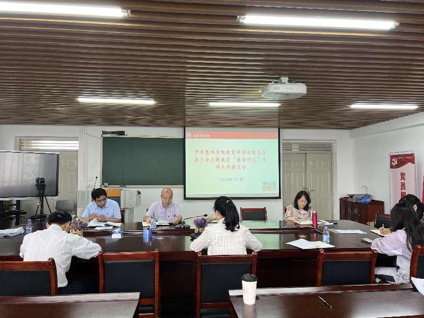 为深入学习贯彻习近平新时代中国特色社会主义思想主题教育,按照学校和学院开展主题教育有关工作安排,2023年5月11日上午,教育科学学院在旭日教学大楼621会议室召开主题教育“调查研究”专项工作推进会,会议由党总支书记谢伟强主持,教育科学领导班子、党总支委员、学生党支部书记、组织员参加了会议。