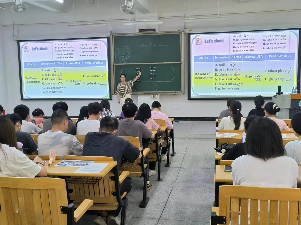 倪勤校长首先展示杭州的多彩文化,激起学生们的学习兴趣,营造课堂氛围。接着,以自身为例子,猜猜她是如何从杭州到达惠州,引出本节课主题,了解世界各地学生上学的方式,回顾学习的交通方式的短语,进一步思考如何对它们进行分类。通过创设情境,让学生们思考选择交通方式的影响因素,学会如何进行交通路线转换的表达,让学生们学会选择适合自己的出行方式,最后进行情感教育感悟交通对生活与世界的影响。倪勤校长呈现了复习课的新思路,将学过的知识串联起来,用一个主题情境进行复习巩固。