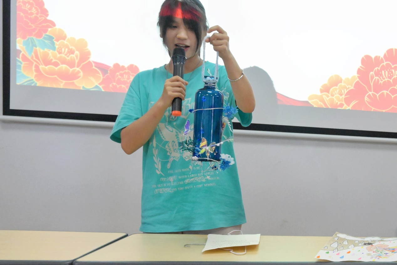 活动最后,李航老师肯定了同学们的创意,同学们凭借自己的主观能动性,各显神通,将废物重新组合,完成了它们的华丽蜕变,并强调希望同学们以后要加强废物的利用;谢晓谦老师赞扬了同学们对此次活动的积极参与,并表示手工创造的过程更是同学们释放自己的情绪和压力的过程。