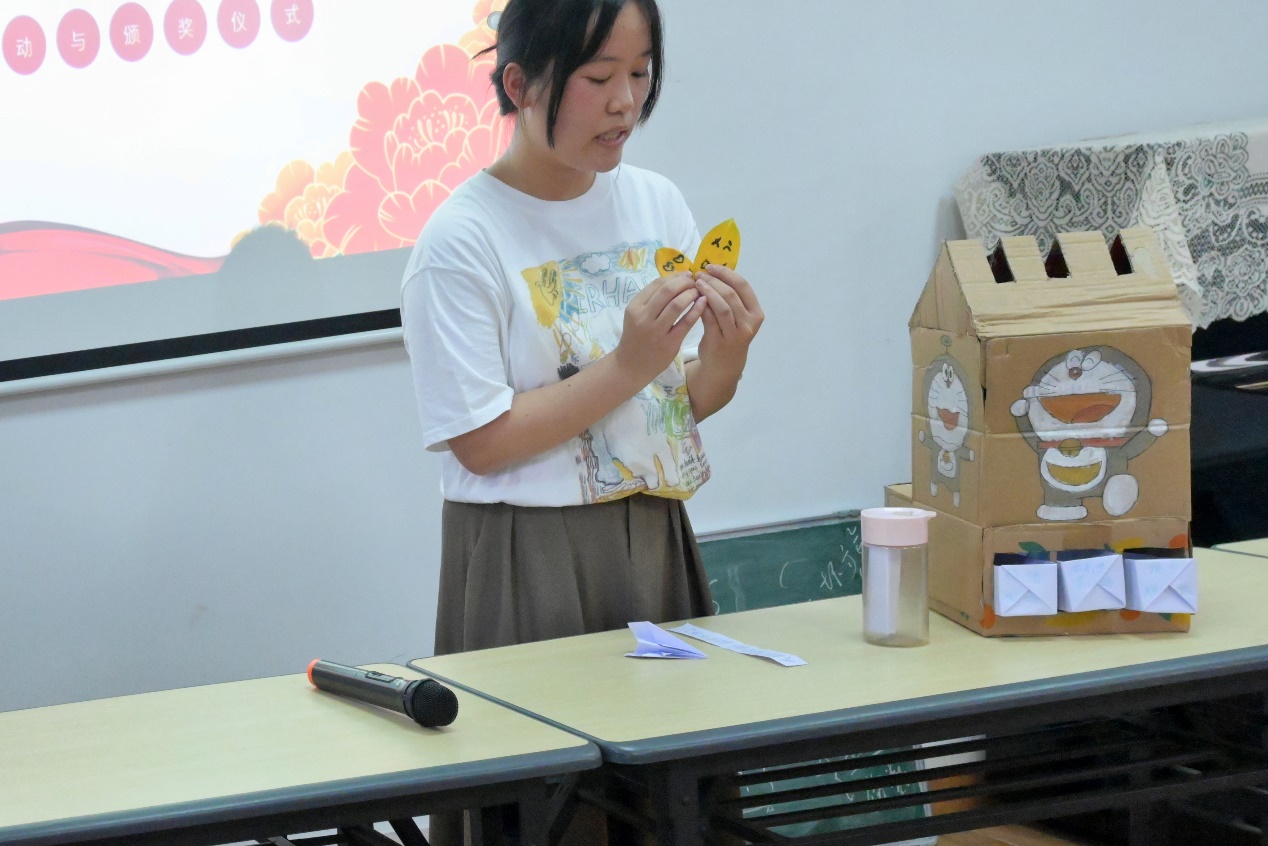获得三等奖的是20级小学教育3班的黎凤宜同学带来的作品《哆啦A梦情绪百宝箱》,21级学前教育1班曾嘉瑞同学带来的作品《绽心花》与22级美术学一班杨心怡同学带来的作品《冬日之家》。