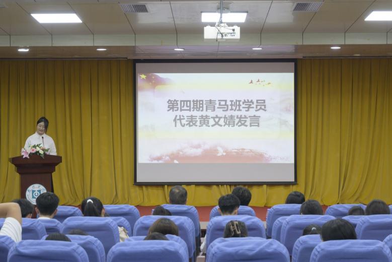 第四期青马班学员黄文婧同学作为优秀代表发言,她在发言中提到:青马班是一个独特的学习平台,它能够让我们深入马克思理论,理解历史和社会,同时也锻炼了我们思维和批判性思考能力,使我们具备更浓厚的家国情怀。随后第五期青马班学员吴筱荠作为新一期学生代表发言,她表示青马班是以马克思主义思想为指导,培养青年人的责任感和担当精神的重要平台,在接下来的日子里,学员们将会努力学习马克思主义理论知识、积极参与社会实践活动、加强自我修养,为实现中华民族伟大复兴贡献出自己的力量。作为学生干部,也要积极帮助同学,关心集体,以实际行动践行社会主义核心价值观。