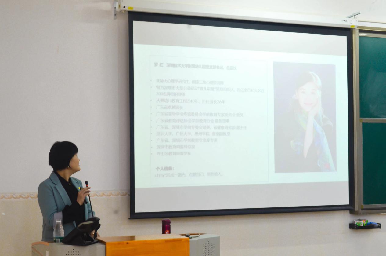 为帮助学生提前做好职业规划,明确人生目标,教育科学学院于2023年11月25日在科技楼B座105教室举办了基础教育名师进校园系列讲座,并荣幸邀请到深圳技术大学附属幼儿园的罗红园长担任主讲人,学前教育专业2021、2022级学生,部分附属幼儿园教师聆听了讲座。
