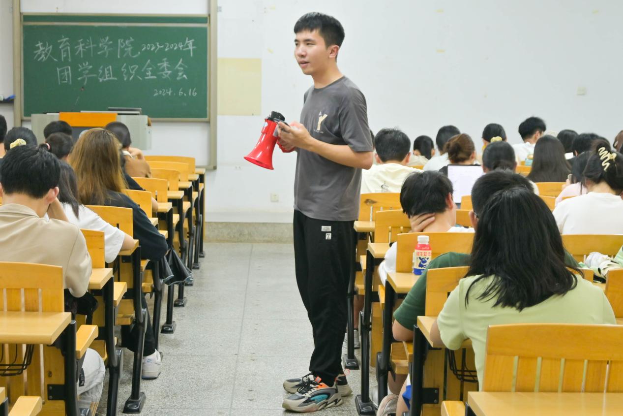 为确保教育科学学院2024年团学组织总结大会暨换届大会顺利开展,促进各部门间友好交流,6月24日晚,教育科学学院在旭日教学大楼405顺利召开了2023-2024学年团学组织第三次全体委员会。教育科学学院团委、学生会、党建及新闻中心全体成员参加了此次会议。