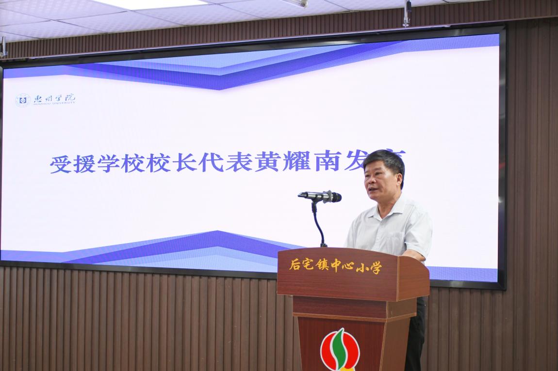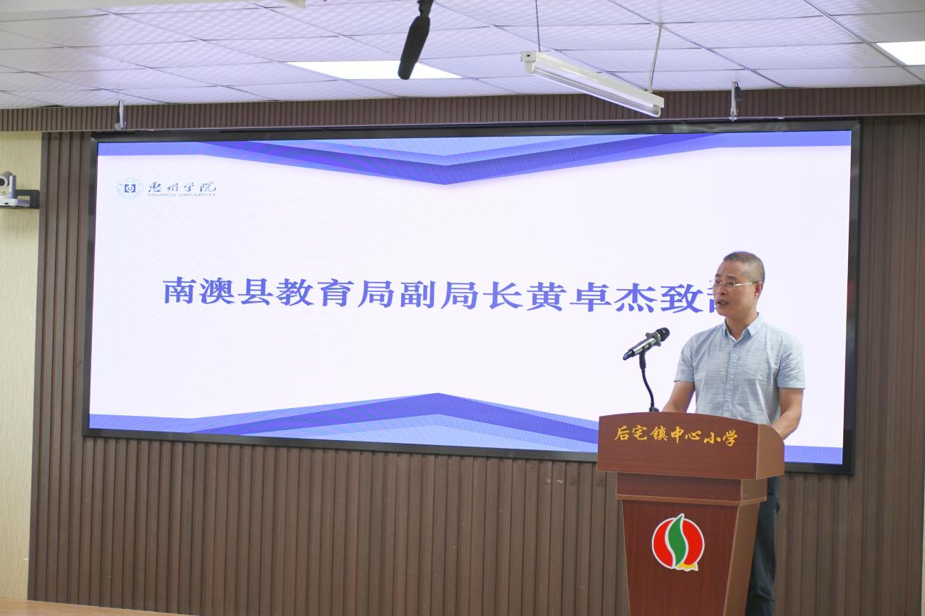 受援学校后宅镇中心小学黄耀南校长代表受援学校对各位优秀的专家前来指导表示热烈欢迎,同时介绍了学校的办学优势以及未来的发展前景,期待通过的指导,提升南澳教育的发展。