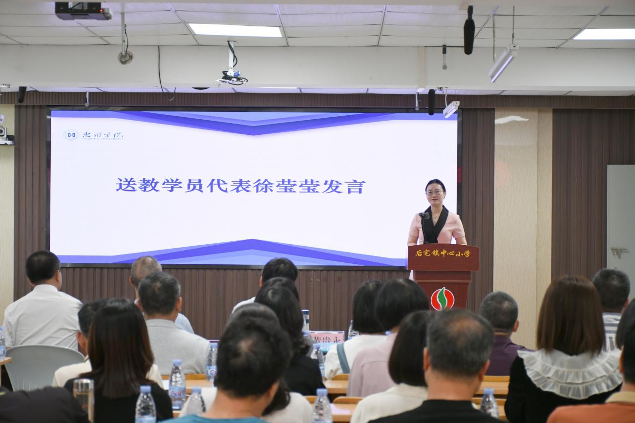 学员代表徐莹莹怀着无比感激的心情,向“百千万人才培养工程”工作组的全体领导、老师致以最诚挚的谢意。感谢工作组为大家提供了这次宝贵的机会,让大家能借此机会共话教育发展、共研学生成长、共促自身提升。