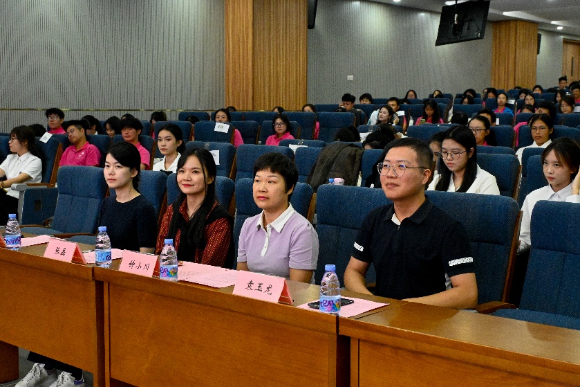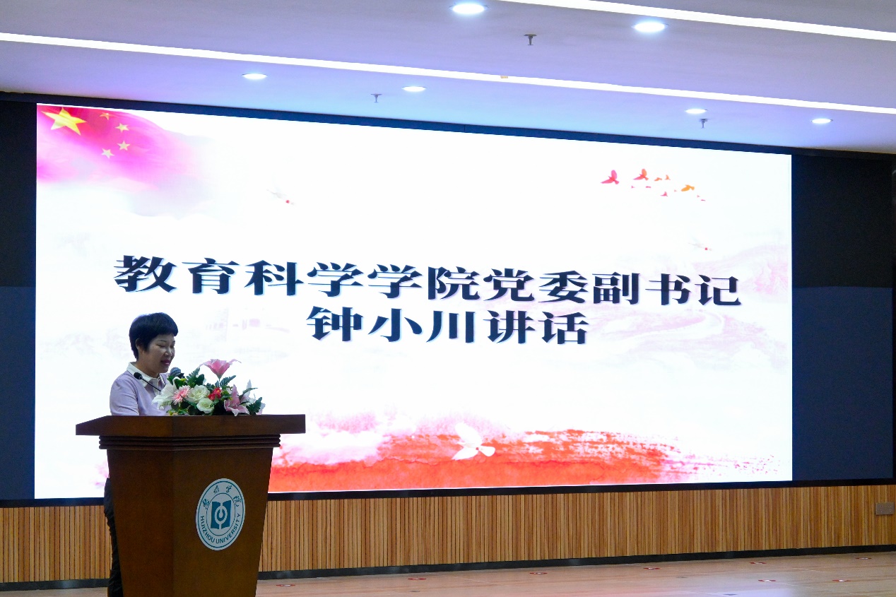 大会在嘹亮的国歌声中拉开序幕:老师与学生一同起立,唱响国歌。紧接着,由党委副书记钟小川宣读了《关于教育科学学院2023-2024学年学生组织主要学生干部表彰决定》文件,该决定表彰了学生组织中一大批优秀学生干部,充分肯定了优秀干部的模范带头作用,同时表彰了一批优秀组织,旨在树立榜样、设定目标,以激励各学生组织部门提高自身水平,不断提升服务能力。