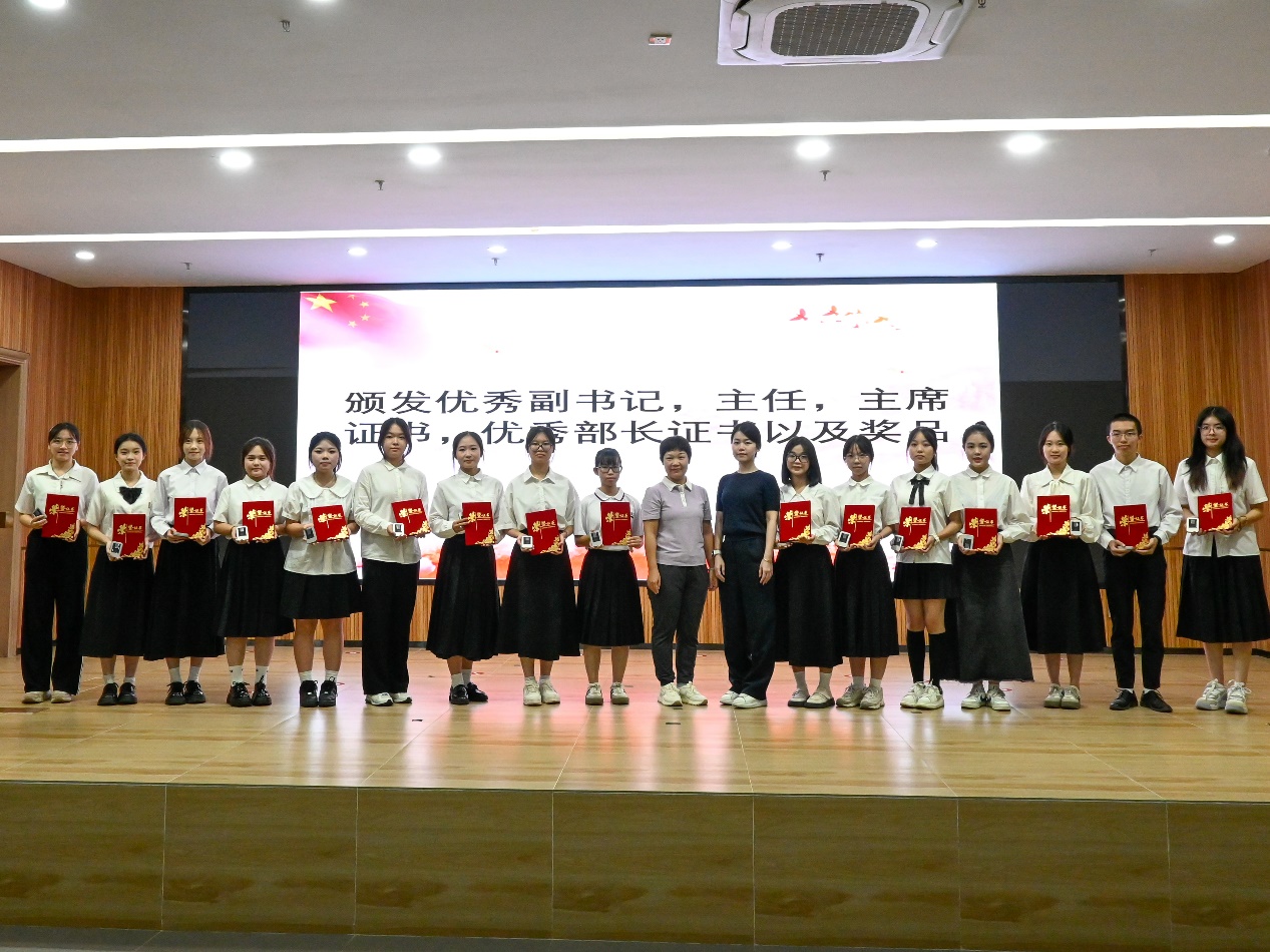 钟小川副书记、辅导员谢晓谦与受表彰的学生组织优秀干部合影