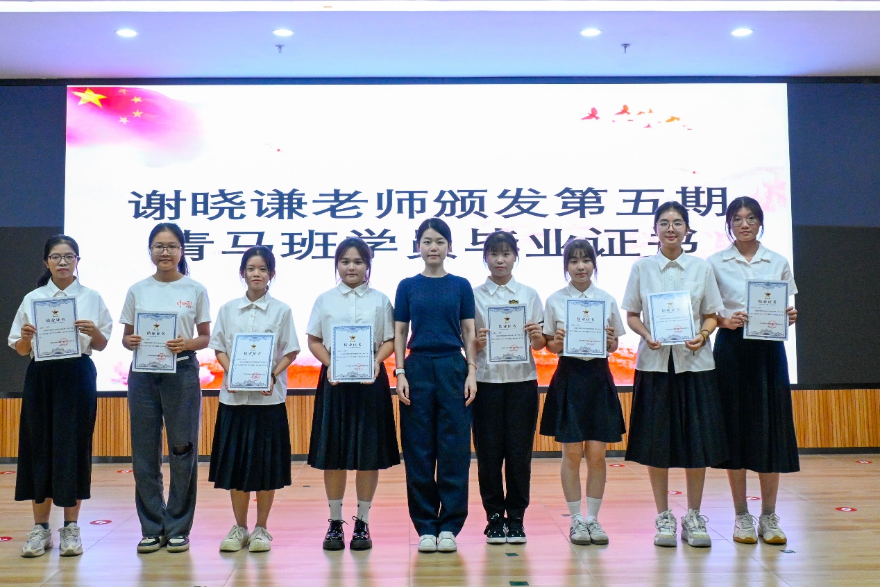 辅导员谢晓谦为第五届青马班学员颁发毕业证书
