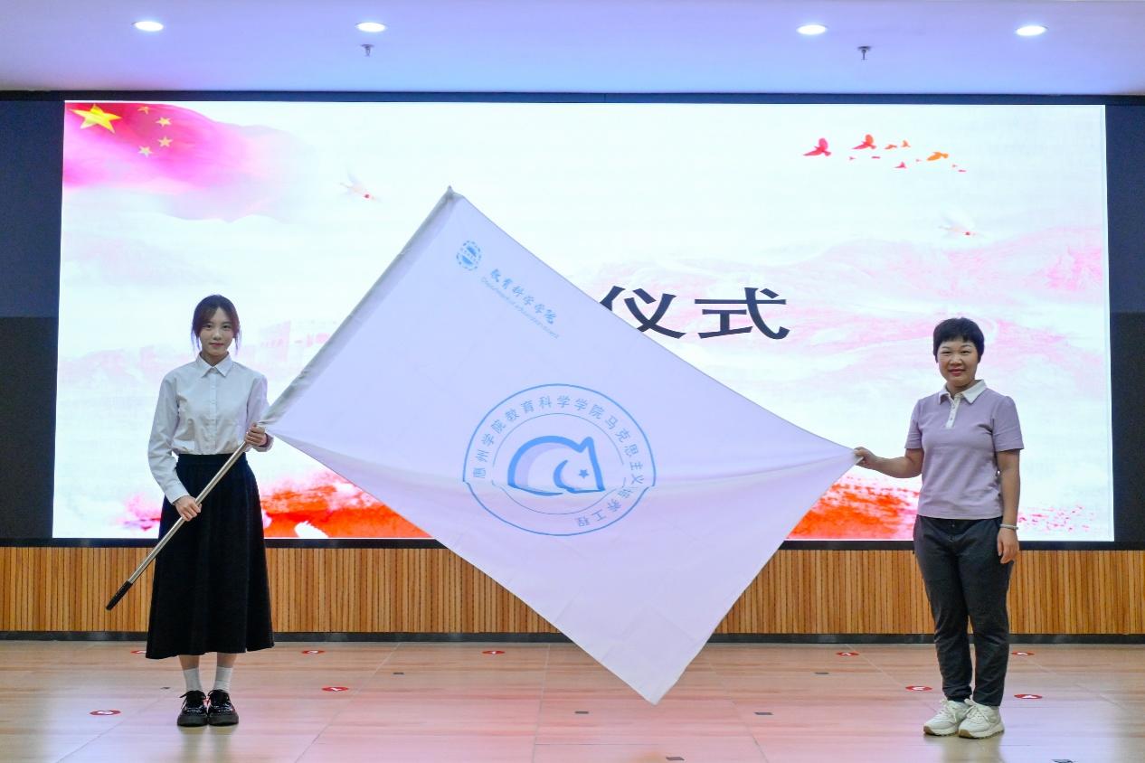 紧接着,会议进入第三阶段。党委副书记钟小川为第六届青马班班主任授旗并进行致辞,她表示第五届青马班的学员在各个方面表现十分优异,第六届青马班的学员需要继续努力,青马班是梦想的沃土,但只有努力向上的种子才能破土而出,开出最绚丽的花朵。学员们不仅仅要加强政治学习,更要将在青马班中学习的热情不断地投入到将来的工作中,才能实现梦想。钟小川同志的一番讲话鼓舞人心,为所有在场的教科院同学们提供了力量,指明了方向。