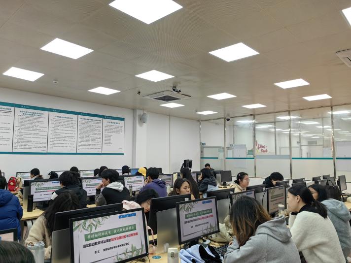 为深化师范生对基础教育精品课制作的理解,提升信息技术与学科教学融合的实践能力,4月1日上午,教育科学学院邀请教育部“基础教育精品课”案例获得者茹文老师在实训楼501开展《现代教育技术》嵌入式教学,主题讲座为“精耕细研助成长 技术领航铸精品——国家基础教育精品课的制作实践经验与创新策略”,22级小学教育专业全体学生参与学习,讲座由王贤文老师主持。