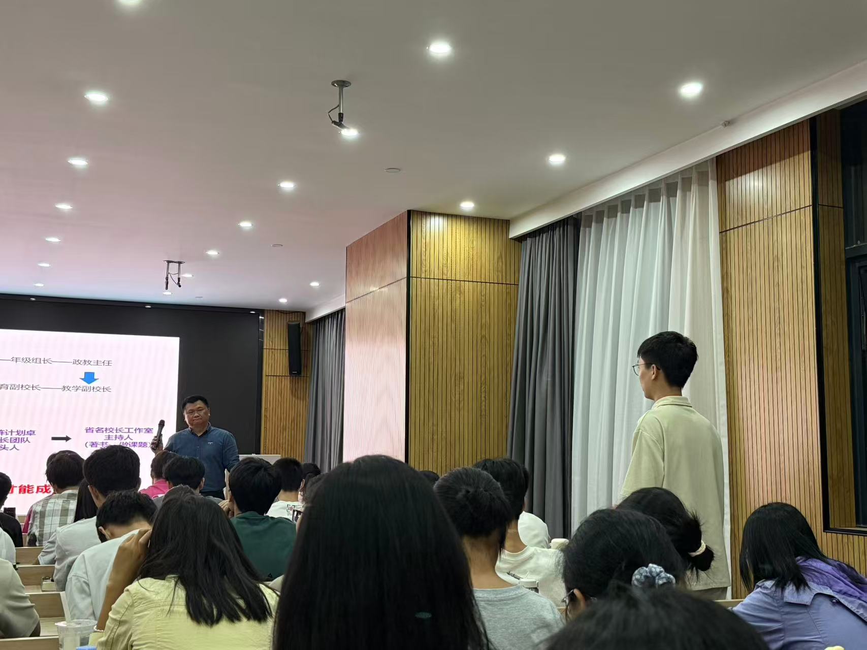 为了让同学们明晰教师职业发展的路径,5月27日晚,惠州市仲恺高级中学曾庆校长应邀在科技楼A座1303为2024级小学教育专业学生开展了“苔花虽小自芳华”的专题讲座,24级小学教育专业全体同学参加了此次讲座。