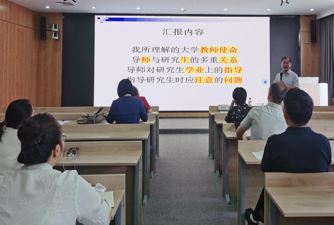 7月13日上午,惠州学院教育硕士导师专题培训会在旭日科技楼A座1304会议室举行。本次培训特邀华南师范大学二级教授、博士生导师、大湾区融合教育发展与治理研究院院长葛新斌教授作专题报告,聚焦“如何做一名合格的研究生导师”展开深度研讨。教育科学学院院长谢桂新主持会议,教育硕士点全体导师及学术班主任参与培训。